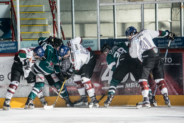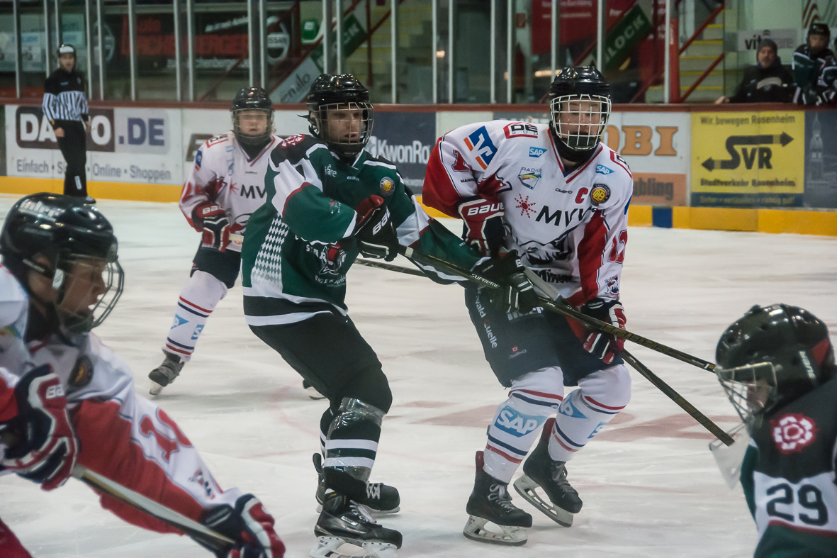 Obwohl sie greifbar nahe - die große Überraschung blieb am Samstagabend doch aus. Lange Zeit hielten die Grün-Weißen mit dem amtierenden DNL-Meister sehr gut mit und führten durch einen Treffer von Philipp Lode nach etwas mehr als sechs Minuten mit 1:0. Nach dem Ausgleich brachte Valentin Hein seine Farben erneut in Front und so gingen die Rosenheimer mit einem Vorsprung in die erste Pause. Der Mittelabschnitt war allerdings erst 56 Sekunden alt, da kamen die Gastgeber zum Ausgleich, dreieinhalb Minuten später zum 3:2. Die Starbulls gaben nicht auf, egalisierten den Rückstand durch Johannes Dörfler, mussten aber kurz vor der Pause bei eigenem Überzahlspiel das 3:4 hinnehmen. Als die Jungadler in der 51.Minute das 5:3 markierten, schien die „Messe gelesen“, Thomas Reichel verkürzte aber 98 Sekunden vor dem Ende auf 4:5. Obwohl SBR-Trainer Thomas Schädler noch seinen Torhüter Luca Endres durch einen sechsten Feldspieler ersetzte, wollte der Ausgleich nicht mehr gelingen. Schädler meinte nach der Partie, dass ein Punktgewinn durchaus verdient und auch im Bereich des Möglichen gewesen wäre.
