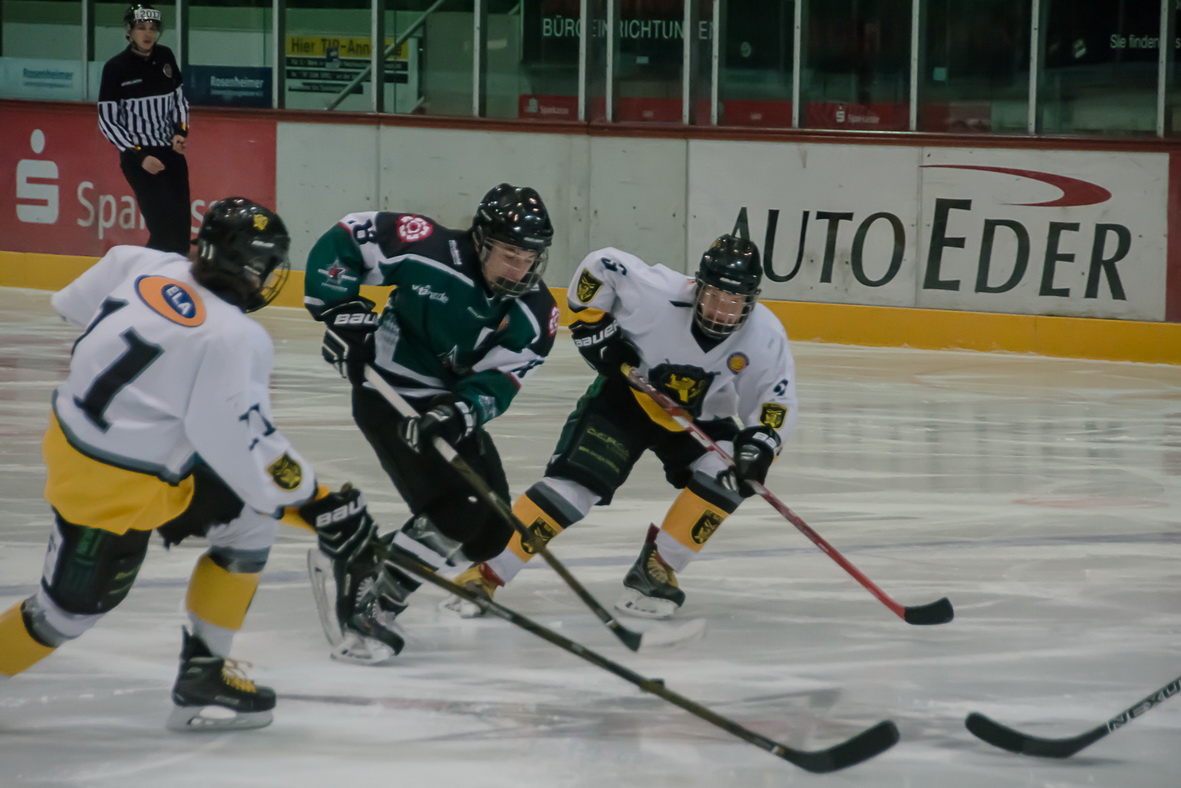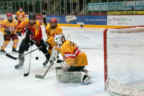 Einmal mehr musste Trainer Thomas Schädler improvisieren, denn er konnte die Auswärtsfahrt nach Iserlohn mit lediglich 15 Feldspielern, darunter zwei Schüler-Spieler antreten. Am Ende der ersten Partie am Samstag lag das Schussverhältnis bei 43:12 für die Sauerländer. Die Gastgeber gingen in der 19.Minute durch einen Treffer im doppelten Überzahlspiel mit 1:0 in Front. Dieses Ergebnis hatte bis Mitte des Schlussabschnitts Bestand, ehe den Iserlohnern innerhalb von 76 Sekunden drei Tore in Unterzahl gelangen.