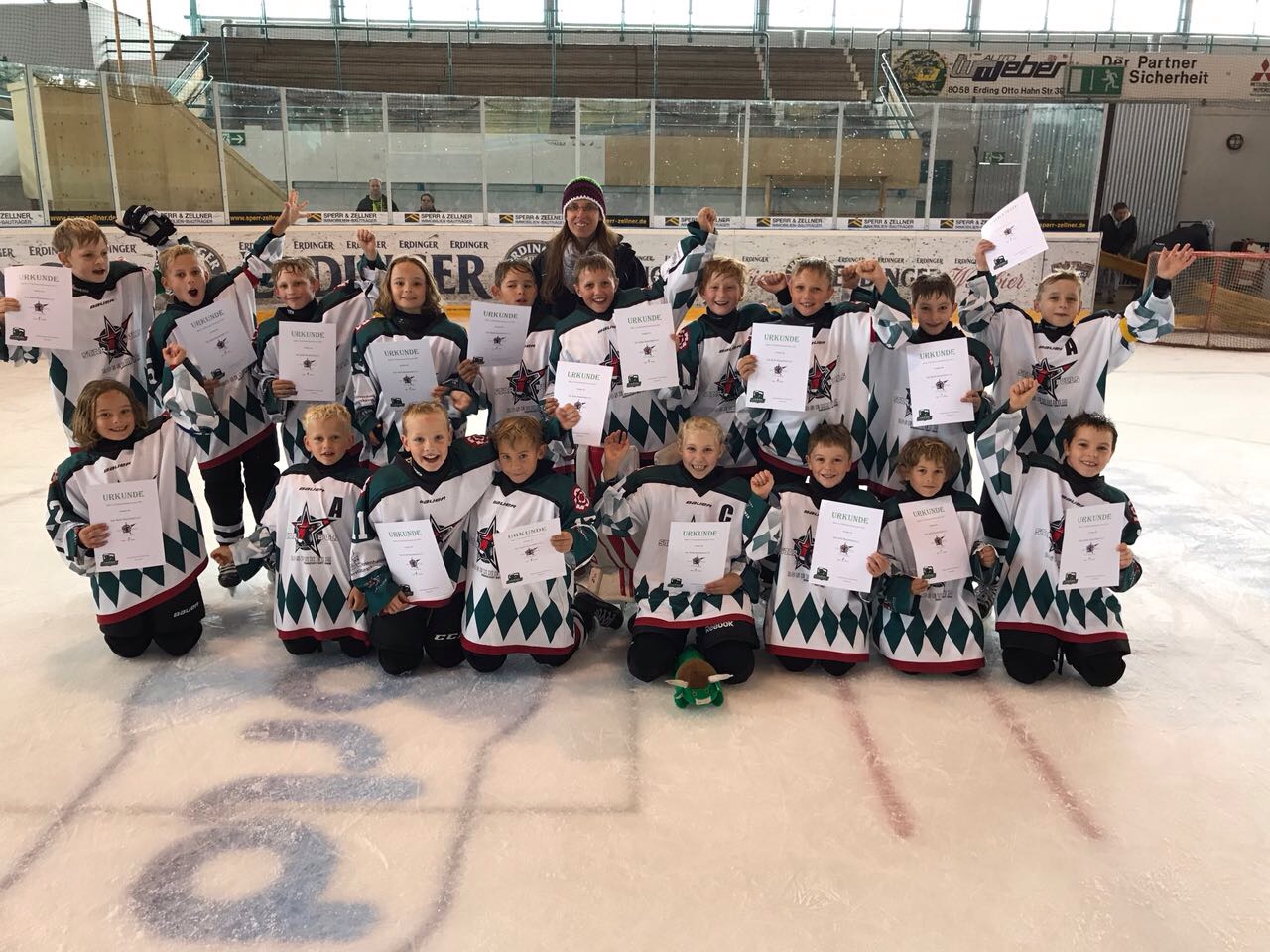 Die jüngsten Starbulls aus der Altersgruppe der Laufschule zeigten beim Freundschaftsturnier in Bad Aibling am vergangenen Samstag großen Einsatz und Leidenschaft und gewannen alle drei Partien gegen den ESC München, EHC Klostersee sowie die Gastgeber aus Bad Aibling. Dass in dieser Altersgruppe der Spaß am Sport und die Ausbildung im Vordergrund steheh, zeigte auch, dass alle Mannschaften zum Abschluss Pokale der gleichen Größe erhielten.